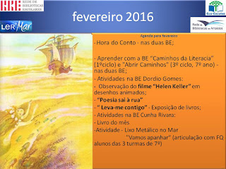 Este blogue apresenta as atividades desenvolvidas pelos Agrupamentos de Arraiolos, Viana do Alentejo e Manuel Ferreira Patrício em Évora, no âmbito do projeto Ler+Mar.